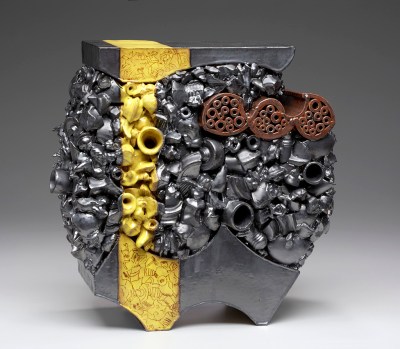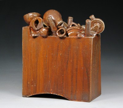 “Old Gin” stoneware, glaze, slips 14″hx11″wx4″d 2010