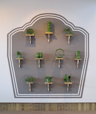 “In the Quixotic Mood” Stoneware, Glaze, Wood, Paint 8’hx8’w 2015