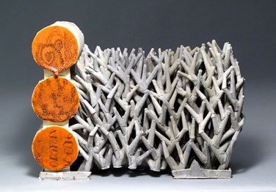 “Capillary Scribble” stoneware, slip, glaze 10”hx12”wx6”d 2012